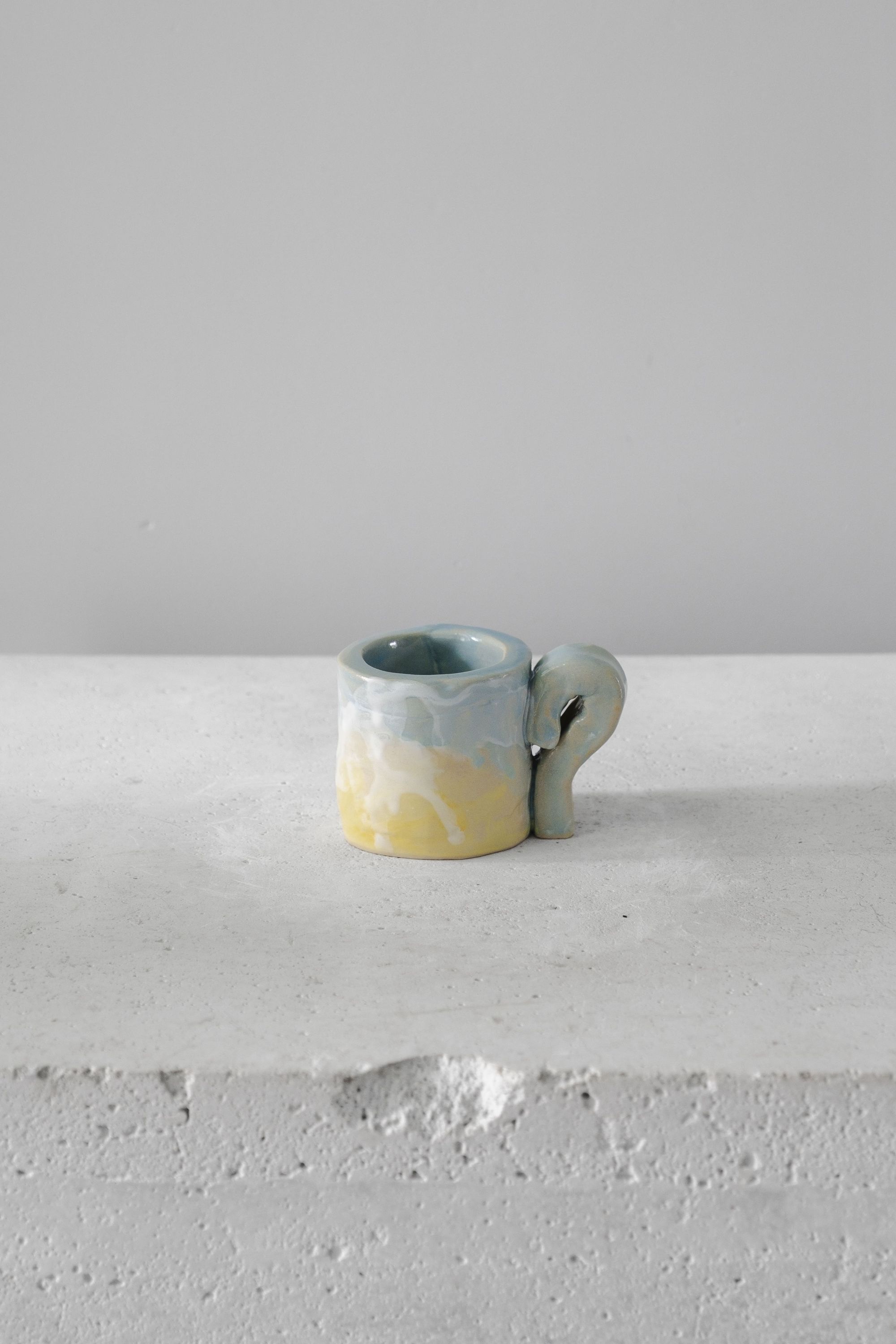 Her primary medium is ceramics. Seemingly simple household objects—vases, cups, and plates—never lend themselves to a straightforward interpretation in her practice. Delicate and tactile at first sight, her works reveal themselves upon closer interaction as heavy and dense objects.