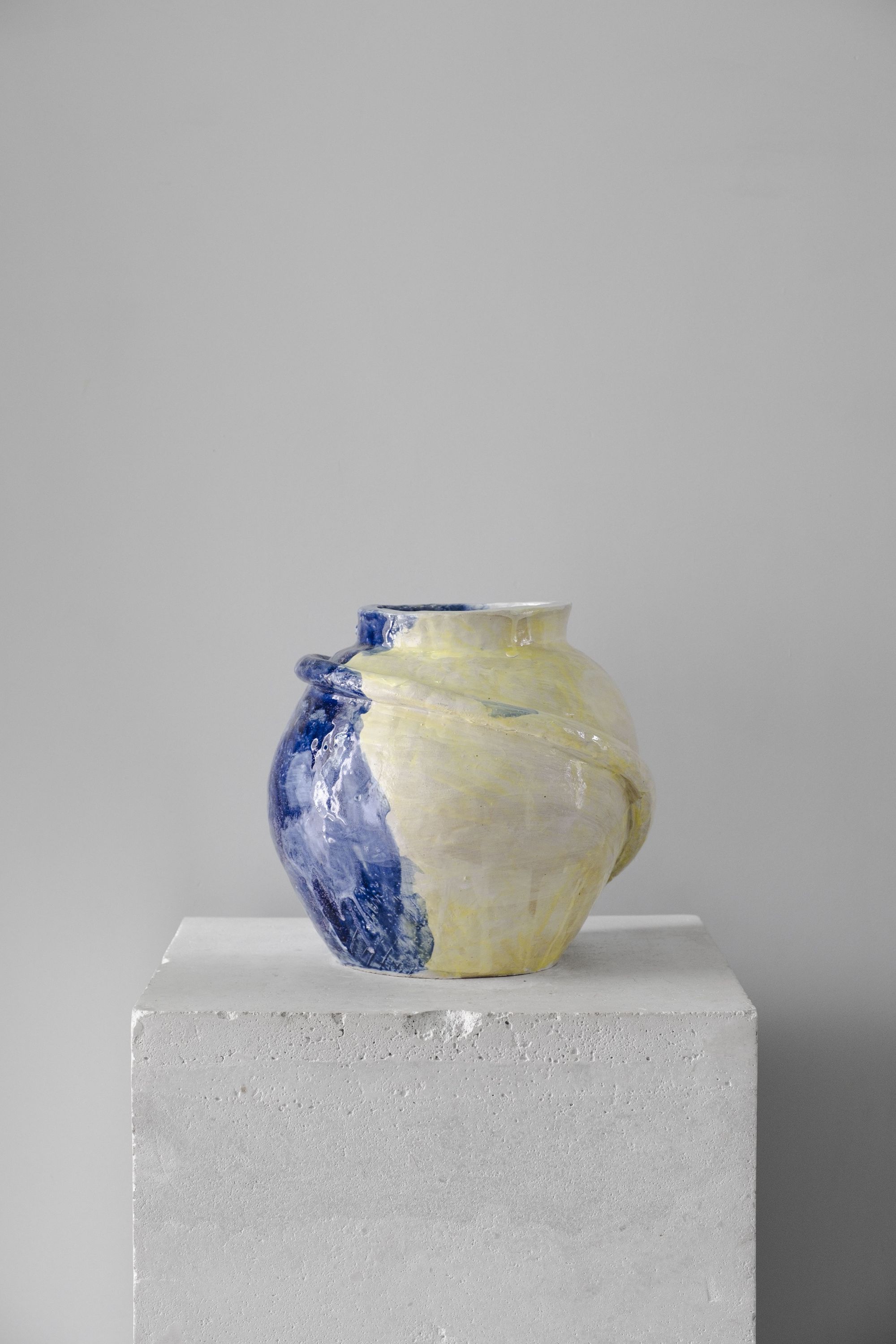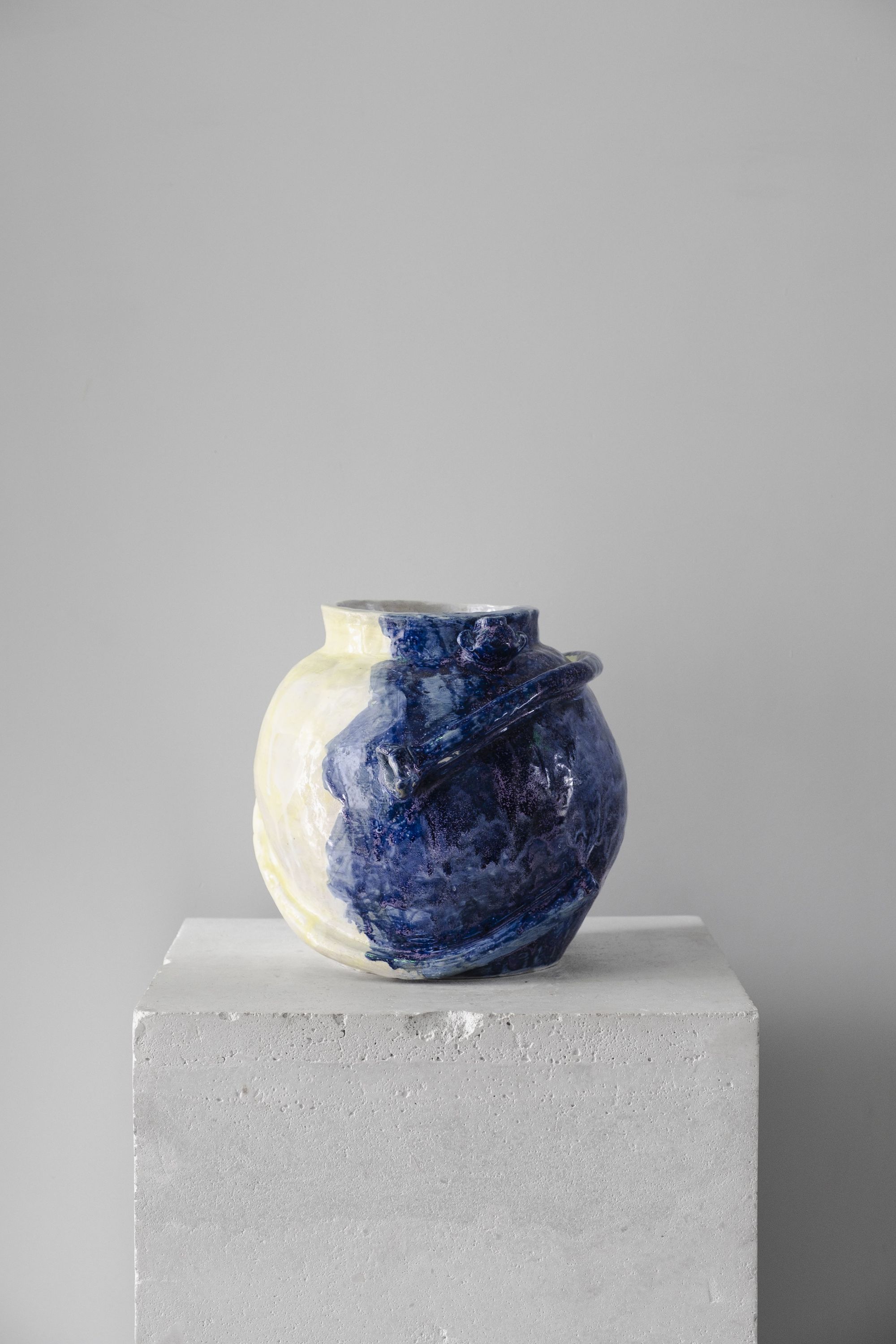 Her primary medium is ceramics. Seemingly simple household objects—vases, cups, and plates—never lend themselves to a straightforward interpretation in her practice. Delicate and tactile at first sight, her works reveal themselves upon closer interaction as heavy and dense objects.