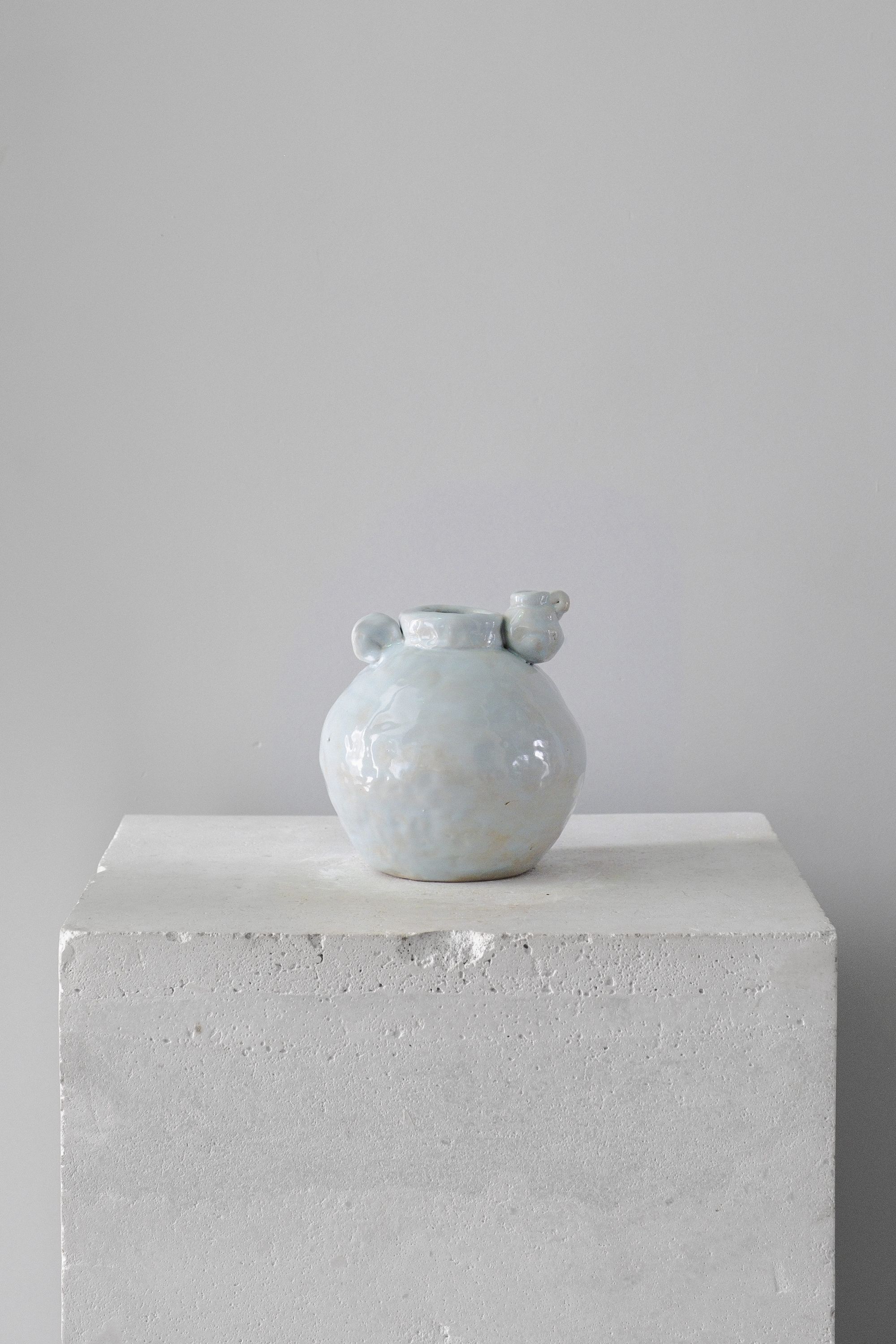 Her primary medium is ceramics. Seemingly simple household objects—vases, cups, and plates—never lend themselves to a straightforward interpretation in her practice. Delicate and tactile at first sight, her works reveal themselves upon closer interaction as heavy and dense objects.