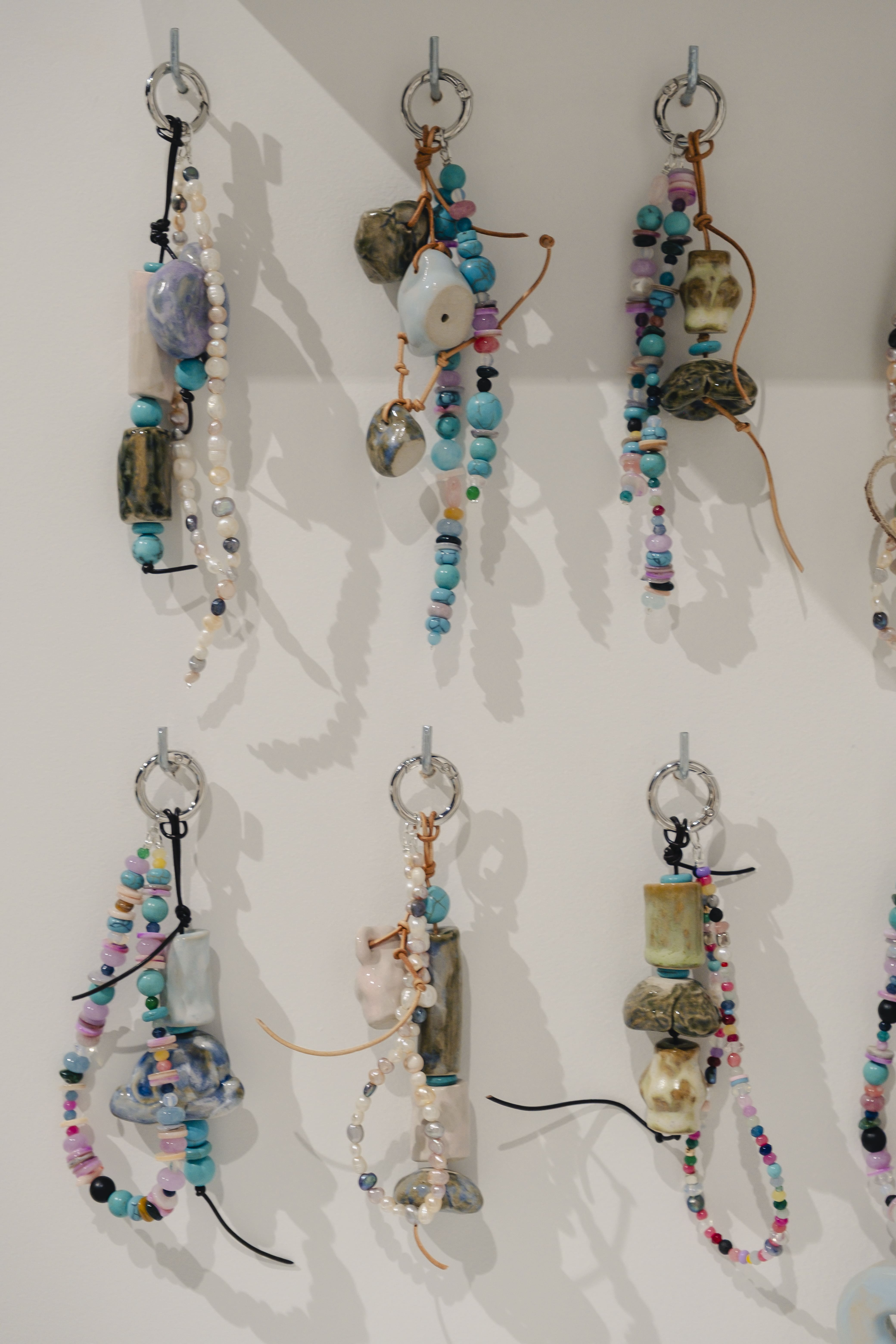 The booth also showcased a collaboration between Masha Egorova and the jewelry brand Maniovich.AM. The girls created a small capsule collection of bag charms. Each of these "art-accessories" — as the booth guests called them — was truly exclusive, made and assembled by hand from natural materials (turquoise, river pearls, leather straps, as well as Masha's signature clay figures).